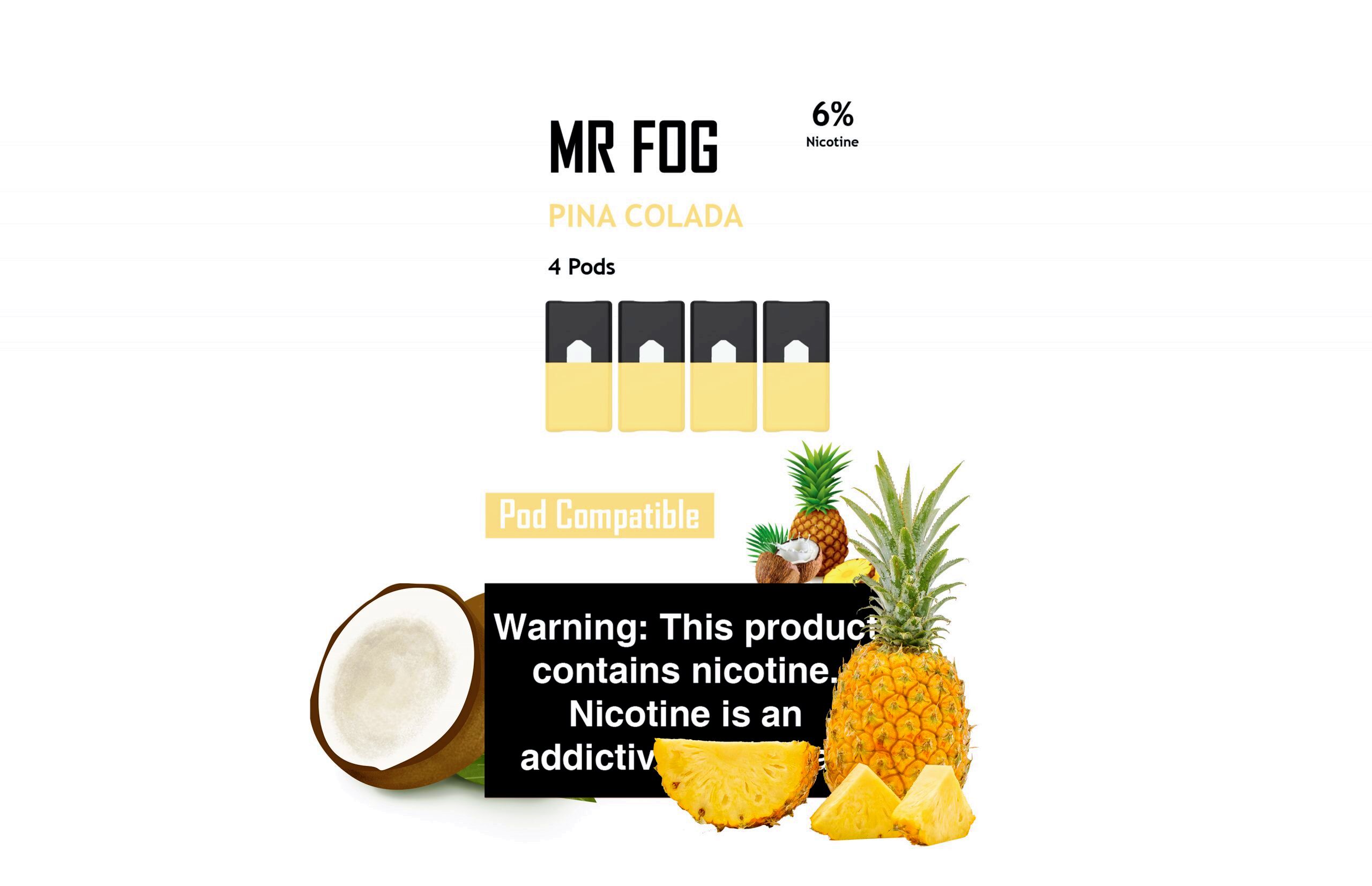 Settings | MR FOG PODS PACK OF 4 PINA COLADA remove | MR FOG PODS PACK OF 4 STRAWBERRY + WATERMELON remove | MR FOG PODS PACK OF 4 SWEDISH FISH remove | MR FOG PODS PACK OF 4 PASSION FRUIT & MANGO remove | MR FOG PODS PACK OF 4 MANGO remove | MR FOG PODS PACK OF 4 LUSH ICE remove |