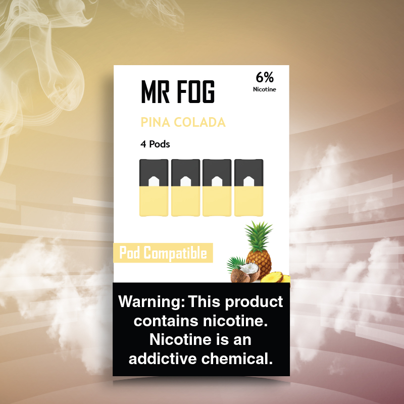 Content | Mr Fog Pina Colada Pods is a genuine island's fortune. The consistency feels like a frapuccino, despite the fact that it's a similar sort of vapor that involves numerous different flavors. As you close your eyes and imagine like you're getting a charge out of another sweltering summer day at the shoreline, feel into the 6% wave of nicotine that shrouds the majority of your desires on the double and makes your mind feel focused once more. As an incredible expansion to any sweet, intrigue your onlookers by bringing into the climate the extravagance of each puff. | MR FOG PODS PACK OF 4 STRAWBERRY + WATERMELONRed is one of our preferred hues, and we consider the way that Mr Fog Pods committed completely zero errors by intensifying the sweet and invigorating watermelon with a sugary however somewhat unpleasant embodiment of the completely matured strawberry together as e-fluid. The fragrance that exudes from your favored gadget when you breathe in the Mr Fog Watermelon Strawberry mix will entrance you with each and every puff. | More often than not, individuals enter an accommodation store to buy two or three staple goods to fulfill their needs and stop by the treat isle to fulfill their sugar yearnings. Mr Fog Pods Swedish Fish has the correct answer for this condition, including a head enhance that imitates the treat to the tee however offers the smoker the chance to keep the vapor in his or her mouth for more. At 6% nicotine, anybody's yearnings would consequently be advocated and pure bliss would be experienced. | MR FOG PODS PASSION FRUIT & MANGO If you’re ingesting the fruit itself, there is only so much of what you can do until you have to swallow it and the remaining flavor dissipates. So, what would you choose? These mild in strength products are perfect for the novice or aficionado alike, for they will never overpower the senses and will always deliver just the right amount of flavor. Package contents: Mr Fog PASSION FRUIT & MANGO 4 Pods - Replacement Pods Each pod contains 1ml of eJuice with 6% nicotine. | When you think of the ultimate carnal pleasure, what comes to your mind? If it’s the Mr Fog Mango Pods then you’ve hit the jackpot. These pods contain within a mouthwatering concoction, which imparts the most natural and purest flavors found inherent in the mango. If you wish to experience the ultimate pulpy, tropical bliss then this should be your first choice. This pleasant recipe allows you to experience the same impeccable taste offered to you by the actual fruit, except in this instance you get to retain it in your palate for a longer duration. So, skip the eating and stick to the puffing! There is no valid reason for you not to try this blend now! | Any smoker hoping to cross new vaping wildernesses will be somewhat excited once the individual in question ventures upon the fan most loved Mr Fog Lush Ice Pods. This is an independent flavor that kicks the delicious watermelon into the spotlight and upgrades its sweetness and frosty suggestions in manners that puncture through the majority of the impediments the sense of taste has. In contrast to rivalry, Mr Fog offers more extravagant flavors and thicker vapors with regards to it's very regarded watermelon mix. In the event that you wish to experience bliss at its best, at that point look no further! |